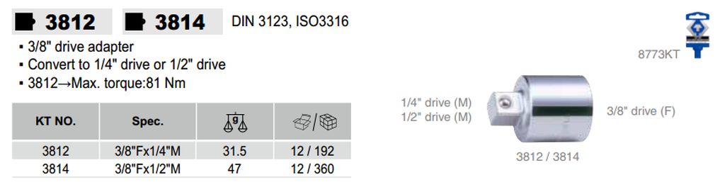 Đầu chuyển cỡ khẩu Kingtony 3814 – Trắng, 3/8 x 1/2