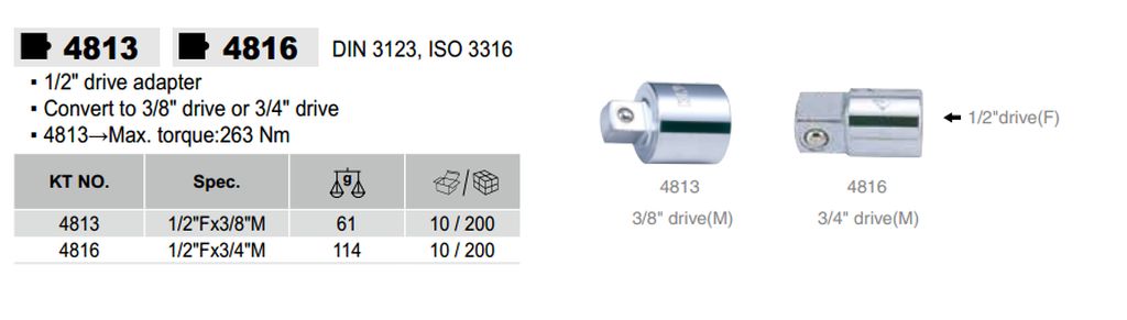 Đầu chuyển cỡ khẩu Kingtony 4813 – Trắng, 1/2 x 3/8
