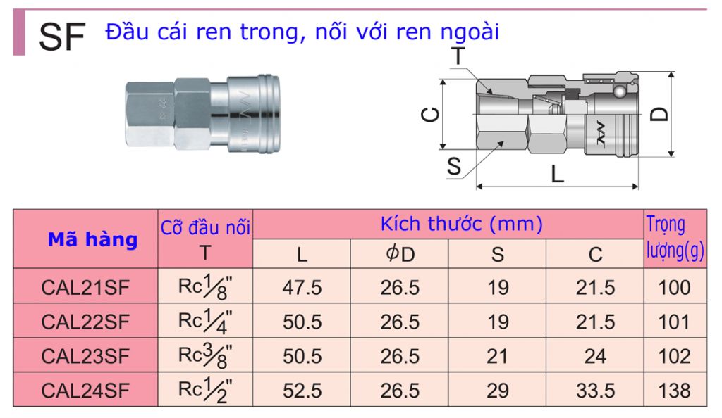 - Đầu nối nhanh khí nén, đầu cái 3/8 inch